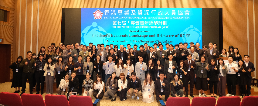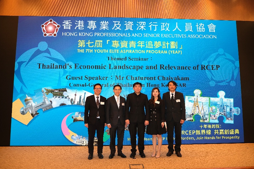 香港專業及資深行政人員協會(下稱「專資會」)於3月28日(星期六)舉行第七屆「專資青年追夢計劃」第三次專題講座,題目為「Thailand's Economic Landscape and Relevance of RCEP」,由泰國駐港總領事Chaturont Chaiyakam擔任分享嘉賓。