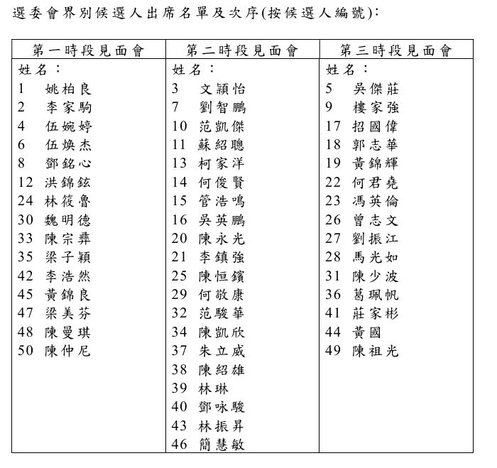 (分3時段,每時段將安排與不同的候選人見面,會員可選多場出席)