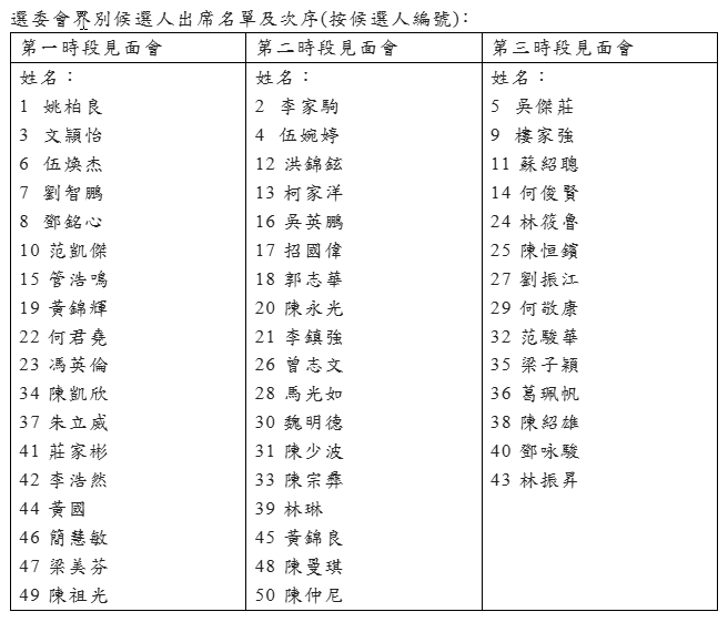 (分3時段,每時段將安排與不同的候選人見面,會員可選多場出席。)