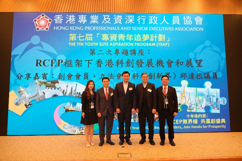 香港專業及資深行政人員協會(下稱「專資會」)於3月7日(星期六)舉行第七屆「專資青年追夢計劃」第二次專題講座,題目為「RCEP框架下香港科創發展機會和展望」,由專資會創會會員、立法會(科技創新界)邱達根議員擔任分享嘉賓。